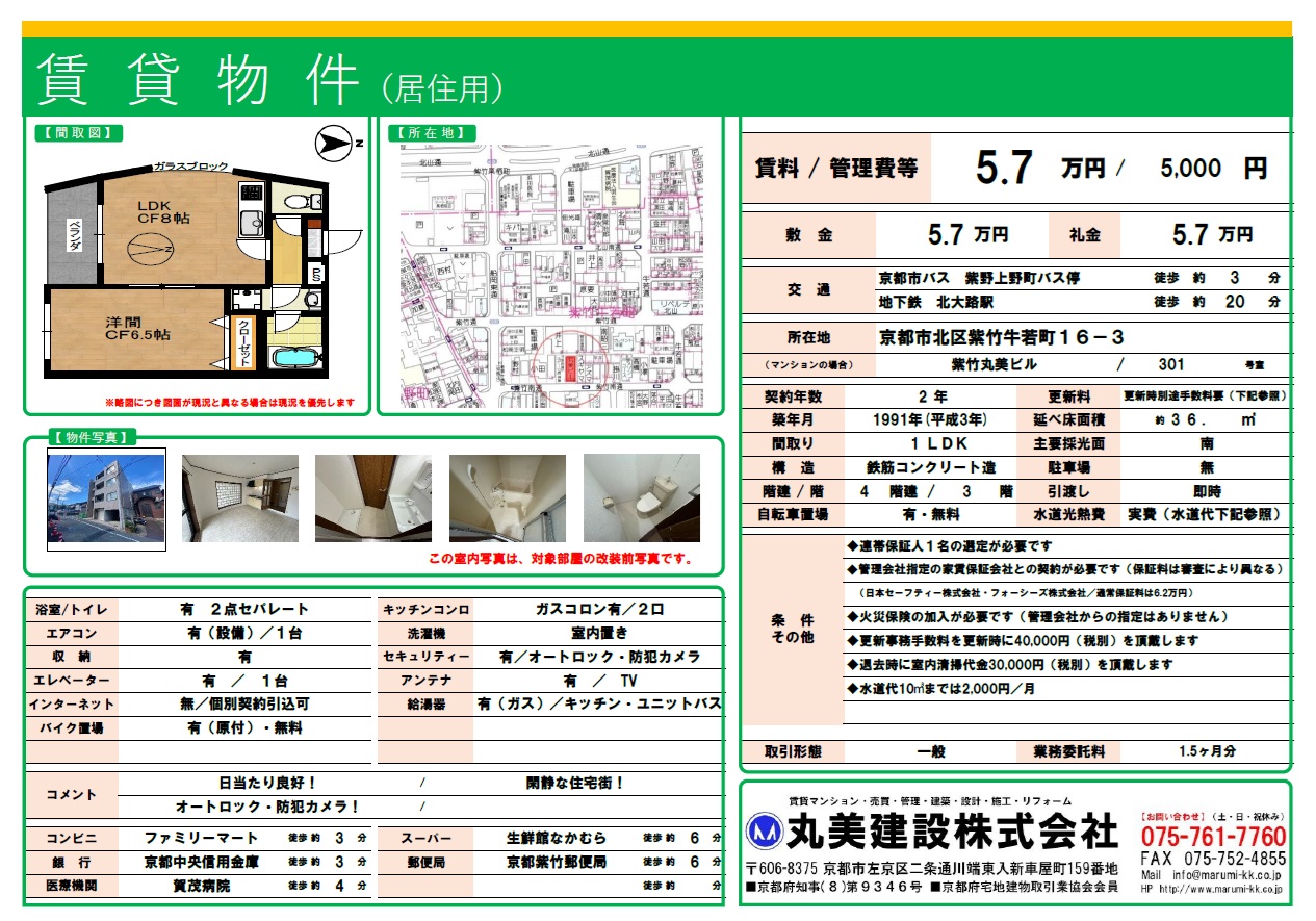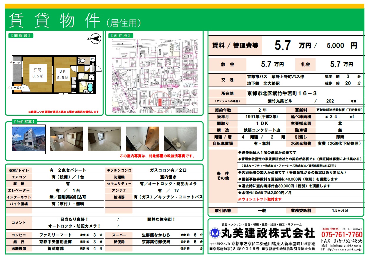【2月上旬入居可】京都市北区紫竹牛若町16-3